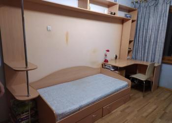 Продам недорого мебель в детскую комнату: полки, стойку, две кровати: односпальную и полутороспальную с матрасами, стол...